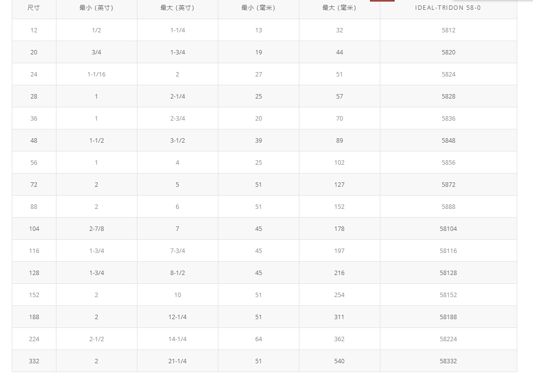 螺丝:3/8”六角头;410不锈钢卡帽:200不锈钢桥:410不锈钢钢带:9、16” 200不锈钢安装扭矩:30英寸磅(3.4 牛米)