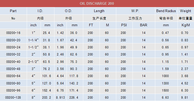 用途:排油管是专为卡车,码头,驳船上这些需要使用到轻便易于抓取的管子的作业环境设计的,可在非真空状态下进行使用,也可用于油田泥浆排放。