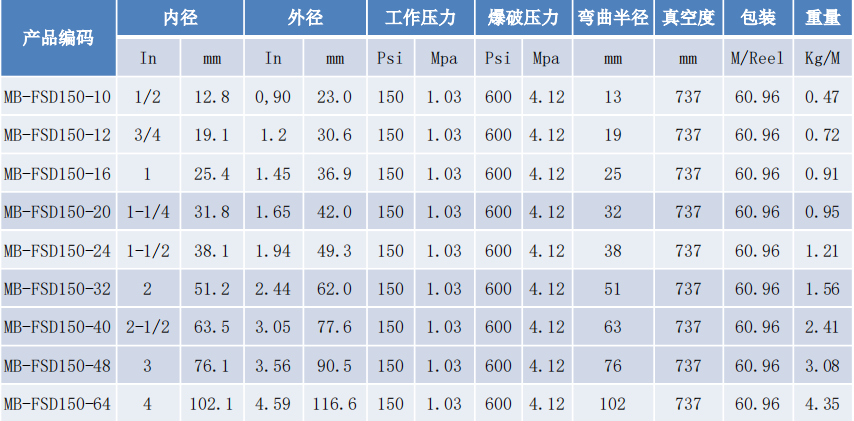 ■ 增强层:多层合成织物螺旋缠绕并带有镀锌防锈螺旋钢丝F